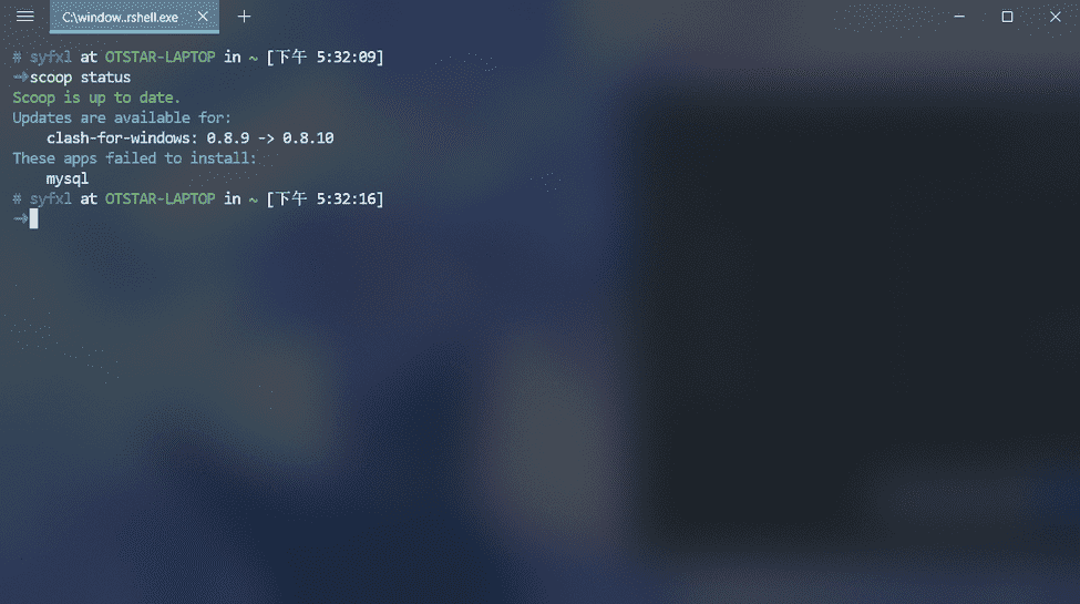 ? 检查状态,有时候我们不想直接升级,而是想看看是否有新版本,或者有的应用安装失败需要重新安装的我们没注意到怎么办?用 scoop status 就行啦