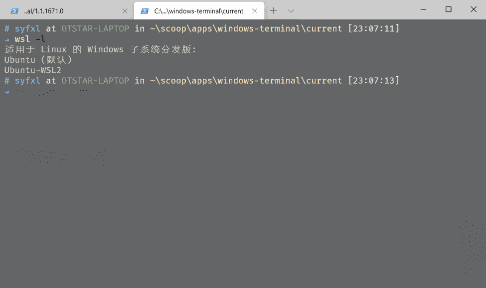 重启完成后我们可以先使用 wsl -l 查看已经安装的 WSL 发行版。